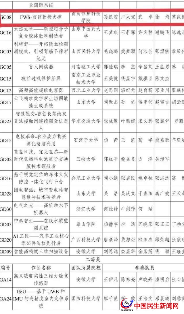 孫凱雯、盧興寶、武卓、徐靖、蘇武博的前臂輪椅支撐項目為學(xué)校爭取到一等獎的榮譽。