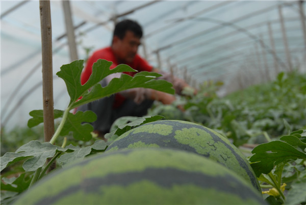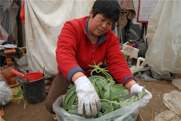 “為了保證西瓜的品質(zhì),我們都用有機(jī)肥和農(nóng)家肥,還采用最原始的人工授粉,所以說種西瓜絕對是個(gè)苦活,過年都在忙,沒有一天休息的。”孫洪寶笑著說,從頭年11月份開始育苗、嫁接,40天后 栽到大棚里,就一直忙到現(xiàn)在。3月份開始給西瓜授粉,大棚里溫度在 30℃ 到 35℃左右,經(jīng)常忙完一上午活,身上的衣服就全濕透了,像剛從水里撈出來的一樣。“賣瓜的時(shí)候是最開心的, 特別是點(diǎn)錢時(shí)心情特別好,感覺所有的辛苦都值得了。”孫洪寶黝黑的臉龐上笑開了一朵花。