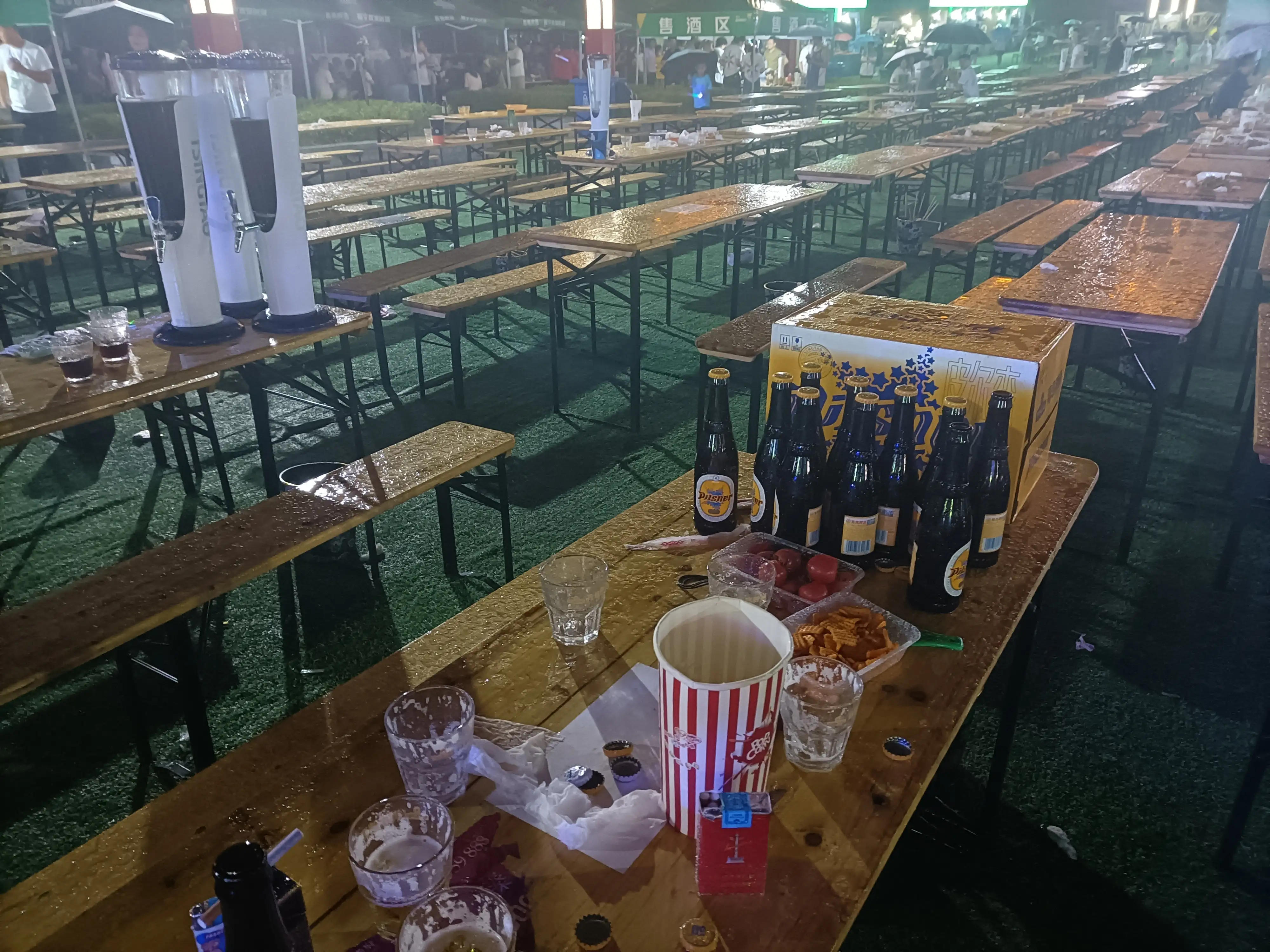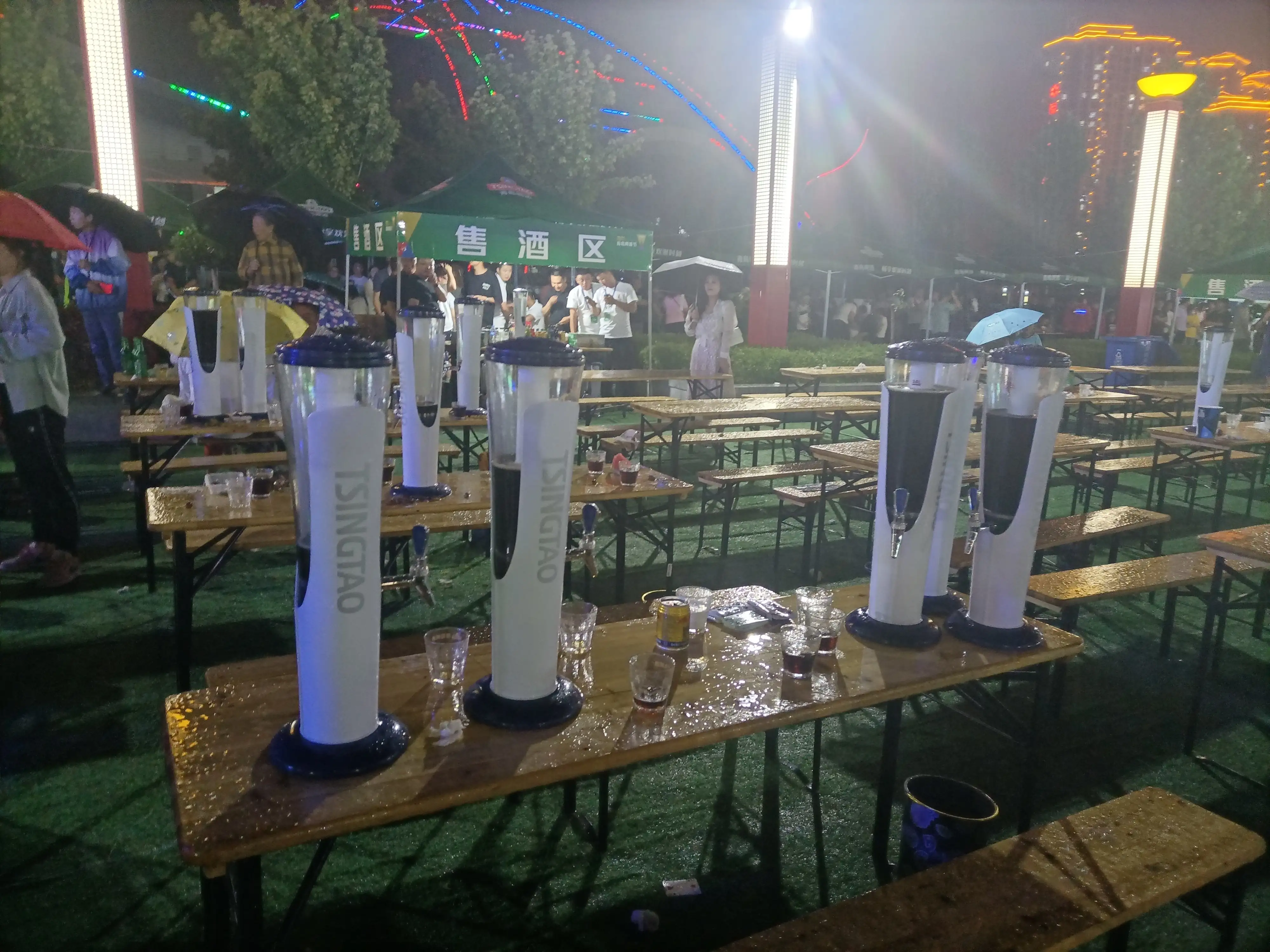 9日晚的定西市第三屆青島啤酒節(jié)開幕式,第一個節(jié)目剛完,剛要講話宣布開幕,突然傾盆大雨,舞臺下面得觀眾們顧不上桌子上還沒喝完的啤酒,趕緊忙到能躲雨的地方躲雨,總算在大雨里表演完了節(jié)目,老城沒下雨,新城大雨,有點遺憾,青島啤酒節(jié)確實是個很受大家歡迎的節(jié)會,再加上最近蘭州又開始有了疫情,這個活動辦的是沒趕上一點好時機??!