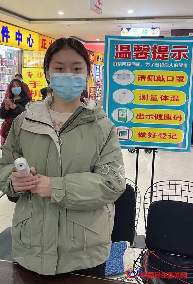 藝術(shù)與傳媒學(xué)院外聯(lián)部馬甜甜同學(xué),積極參加志愿活動,在商場里做志愿服務(wù),為消費者量體溫,并監(jiān)督他們佩戴口罩,出示健康碼,并做好登記。保證自己以及他人的安全。