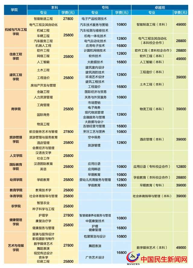學(xué)校設(shè)有商學(xué)院、建筑工程學(xué)院、健康管理學(xué)院、國(guó)際教育學(xué)院、機(jī)械與汽車工程學(xué)院、信息工程學(xué)院、藝術(shù)與傳媒學(xué)院、幼師學(xué)院、旅游管理學(xué)院、農(nóng)學(xué)院、人文學(xué)院、教育學(xué)院、體育學(xué)院、馬克思主義學(xué)院等14個(gè)二級(jí)學(xué)院?,F(xiàn)開(kāi)設(shè)本科專業(yè)40個(gè),高職??茖I(yè)37個(gè),涵蓋工學(xué)、管理學(xué)、藝術(shù)學(xué)等9個(gè)學(xué)科門類,形成了以工學(xué)、管理學(xué)為主,多學(xué)科協(xié)調(diào)發(fā)展的學(xué)科專業(yè)布局。目前學(xué)校建有2個(gè)省級(jí)一流本科專業(yè),4個(gè)省民辦本科高校優(yōu)勢(shì)特色專業(yè)。2021年學(xué)校入選山東省第二批應(yīng)用型本科高校建設(shè)單位。