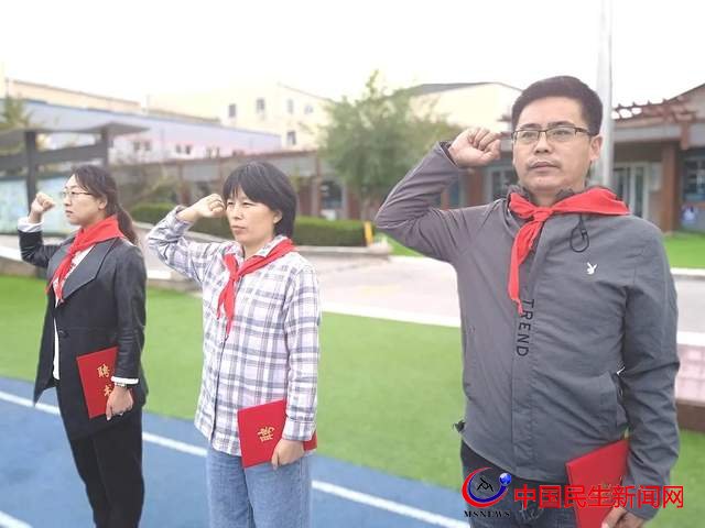 隨后,吳校長宣讀聘任中隊輔導員決定,為獲聘中隊輔導員頒發(fā)了聘書,由少先隊員代表為中隊輔導員老師們敬獻紅領(lǐng)巾。