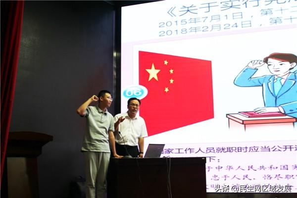 憑著多年從教經(jīng)驗(yàn)和法律實(shí)踐經(jīng)驗(yàn),朱律師很快的把同學(xué)們帶入了法律的海洋中。朱律師首先從國家憲法日、就職宣誓、憲法的法律效力、憲法史等方面帶領(lǐng)大家初步認(rèn)識憲法,一個(gè)小的互動(dòng)環(huán)節(jié)——模擬就職儀式公開憲法宣誓,將會(huì)場氣氛掀起了一個(gè)小高潮。