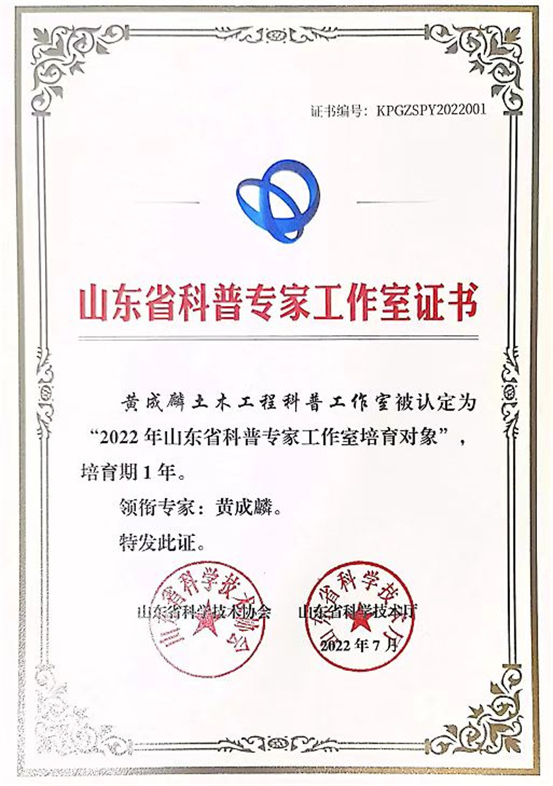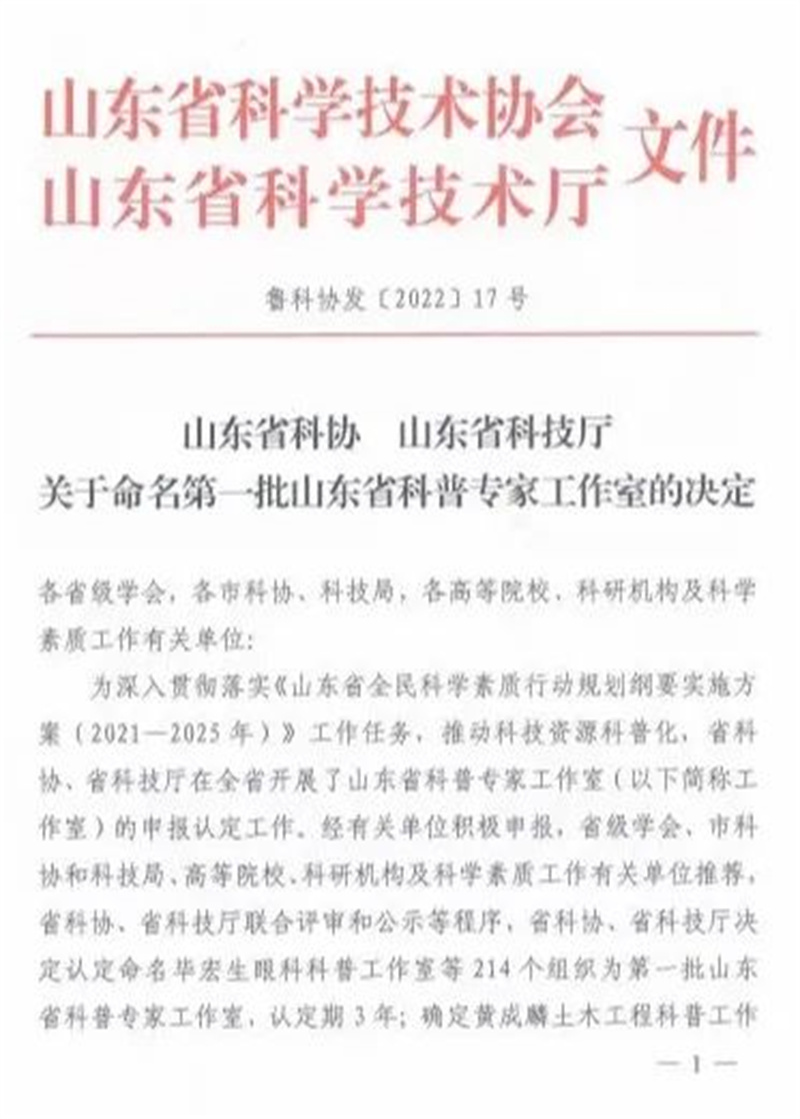 本次認定工作系山東省首次舉辦,學校積極組織申報、遴選推薦,省科協(xié)、省科技廳聯(lián)合評審,最終恒星學院農(nóng)學院“王凱榮興農(nóng)科技服務科普工作室”獲首批山東省科普專家工作室認定命名;建筑工程學院“黃成麟土木工程科普工作室”獲首批山東省科普專家工作室培育對象認定命名。