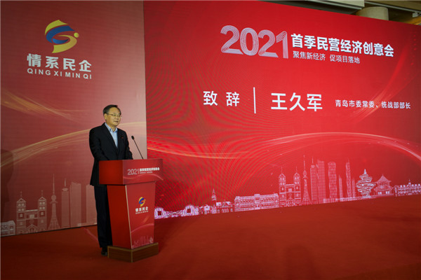 3月29日,青島市民營(yíng)經(jīng)濟(jì)發(fā)展局、嶗山區(qū)人民政府和青島市派駐嶗山區(qū)服務(wù)企業(yè)工作隊(duì)共同舉辦了“聚焦新經(jīng)濟(jì) 促項(xiàng)目落地”2021年首季民營(yíng)經(jīng)濟(jì)創(chuàng)意會(huì),圍繞工業(yè)互聯(lián)網(wǎng)、供應(yīng)鏈金融、國(guó)企混改等新經(jīng)濟(jì),助力青島市構(gòu)筑戰(zhàn)略競(jìng)爭(zhēng)優(yōu)勢(shì),實(shí)現(xiàn)經(jīng)濟(jì)高質(zhì)量發(fā)展。青島市委常委、統(tǒng)戰(zhàn)部部長(zhǎng)王久軍出席并致辭,市人大財(cái)經(jīng)委、市科技局、市工信局、市財(cái)政局、市人社局、市教育局,各區(qū)市民營(yíng)經(jīng)濟(jì)(中小企業(yè))主管部門(mén),部分金融機(jī)構(gòu)、民營(yíng)企業(yè)創(chuàng)意方案公司主要負(fù)責(zé)人以及重點(diǎn)民營(yíng)企業(yè)代表近180人現(xiàn)場(chǎng)參加了此次活動(dòng)。