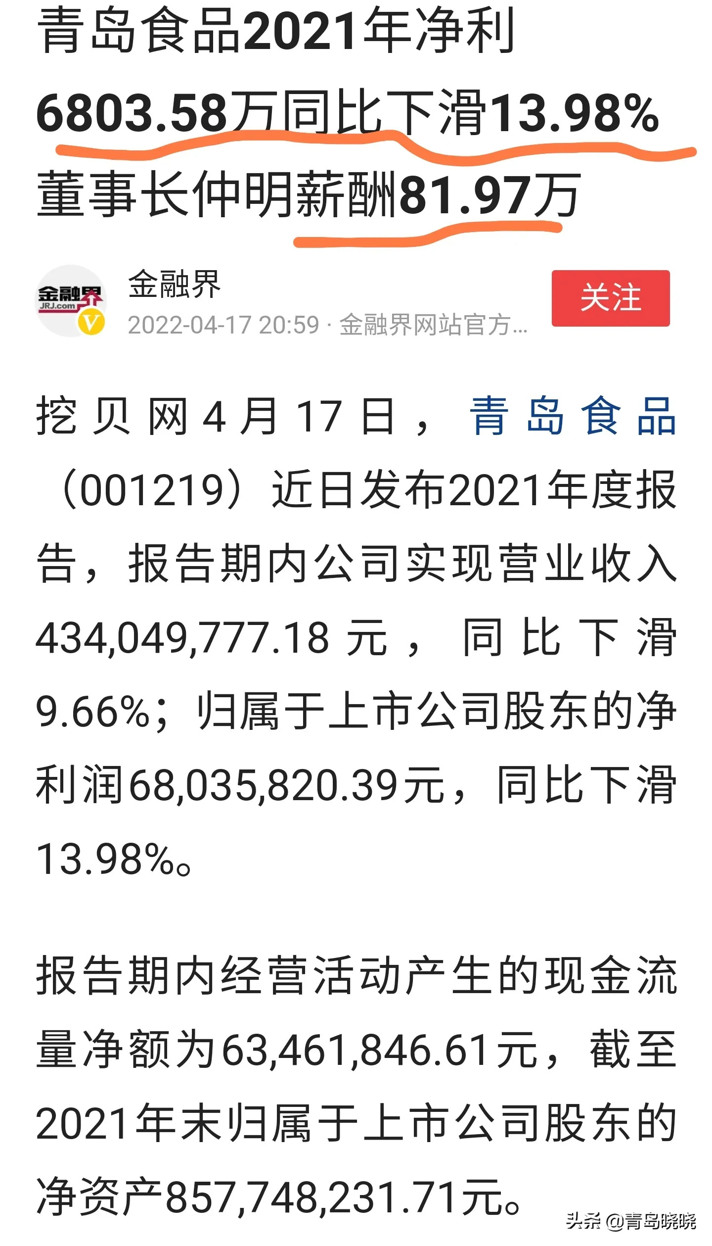青島食品年報出爐。凈利6800多萬。青島鈣奶餅干在大山東的知名度還是可以的,但是就是走出山東,就幾乎看不到了,外地的商場里,很少看到餅干這種食物。