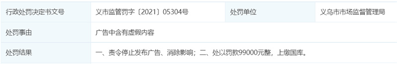 再說(shuō)回瀾庭集本身,在過(guò)往這些年間,圍繞著瀾庭集出現(xiàn)的處罰記錄也一直在疊加,經(jīng)查,瀾庭集(浙江)貿(mào)易有限公司在注銷(xiāo)之前的2021年4月21日就曾因廣告中含有虛假內(nèi)容被義烏市市場(chǎng)監(jiān)督管理局責(zé)令停止發(fā)布廣告、消除影響;處以罰款99000元整,上繳國(guó)庫(kù)。決定書(shū)文號(hào):義市監(jiān)管罰字〔2021〕05304號(hào)。