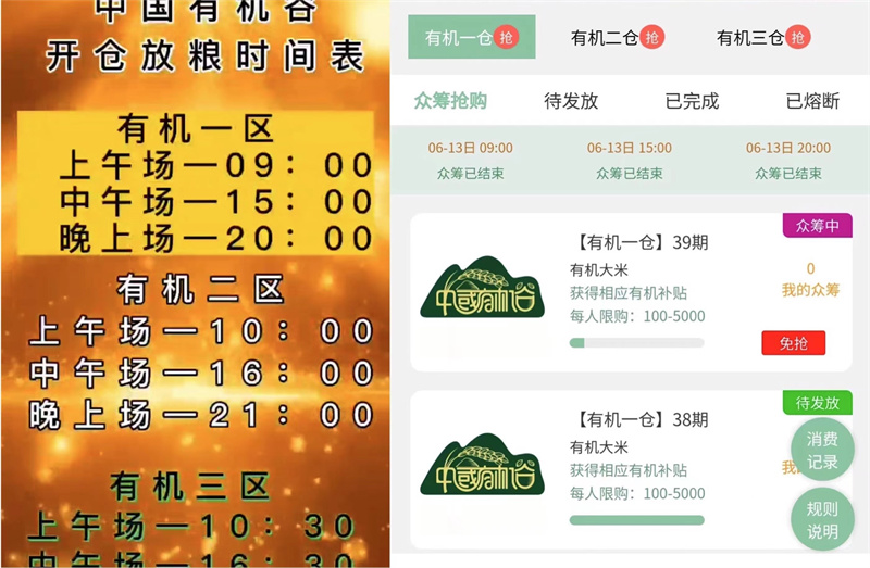 此外,根據(jù)中國有機谷推出的數(shù)字化貨幣APP顯示,被邀請成為中國有機谷APP注冊會員后即可參與中國有機谷眾籌預售,每日限時可參與多次眾籌。