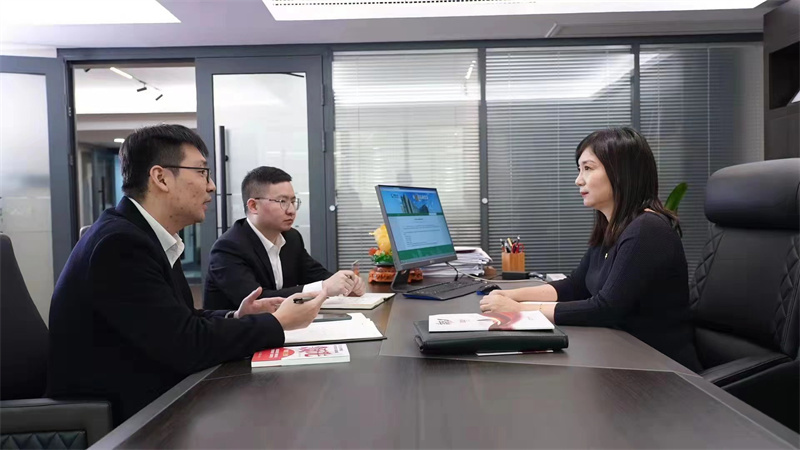 圖:李江紅與團(tuán)隊(duì)伙伴溝通工作
