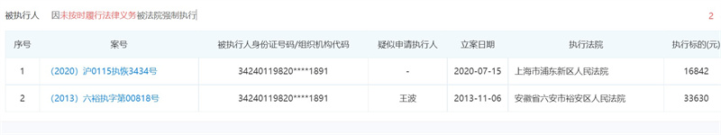 據(jù)企查查顯示,鄧賢炳曾因未按時(shí)履行法律義務(wù)先后被安徽省六安市裕安區(qū)人民法院和上海市浦東新區(qū)人民法院強(qiáng)制執(zhí)行。