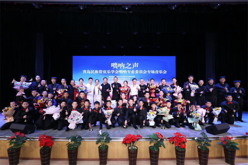 青島民族管弦樂學(xué)會、青島歌舞劇院民族樂團(tuán)各位領(lǐng)導(dǎo)同社會各界的專家,教授,老師和觀眾們一起觀看了這場精彩的嗩吶盛會。
