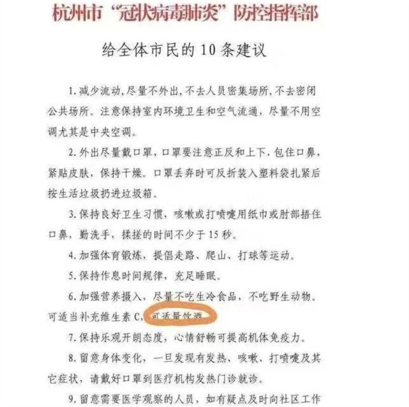 《杭州市“冠狀病毒肺炎”防控指揮部給全體市民的10條建議》第六條寫(xiě)著“加強(qiáng)營(yíng)養(yǎng)攝入,盡量不吃生冷食品,不吃野生動(dòng)物??蛇m當(dāng)補(bǔ)充維生素 C,