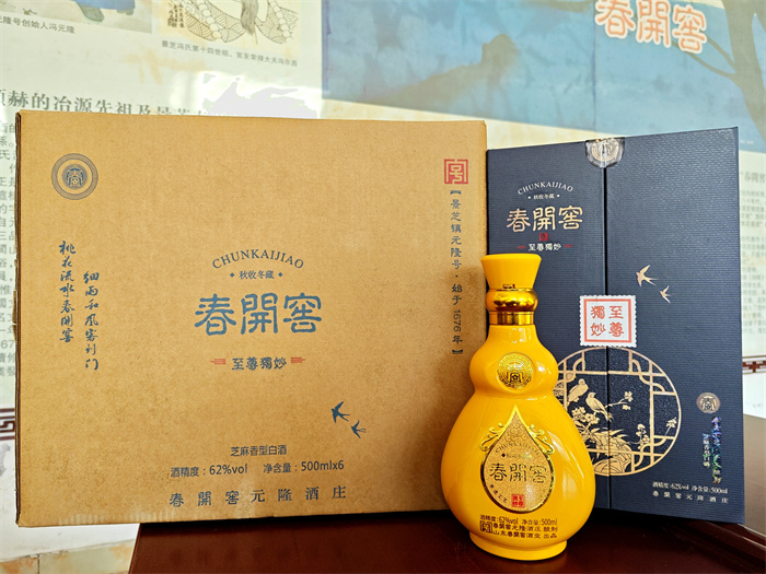 前些年隨著山東芝麻香白酒的異軍突起,馮金國抓住時機,適時推出了春開窖“冬醞136”高端芝麻香白酒。該產(chǎn)品以發(fā)酵周期136天以上的芝麻香酒為基酒,在地下酒窖內(nèi)經(jīng)過2年以上的存儲,按照獨特配方勾調(diào)出成品酒。香氣突出、醇香濃郁、綿甜爽凈,具備了初品焦香、回味醇香、潤舌濃香、余味醬香的突出特點。春開窖新推出的兩款冬醞136芝麻香白酒分別為62度和68度。包裝采用葫蘆(福祿)造型的陶瓷瓶,流光溢彩、典雅別致。各界人士對“冬醞136”高端芝麻香白酒,從酒質(zhì)到包裝都給予了高度評價。