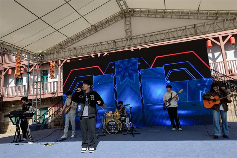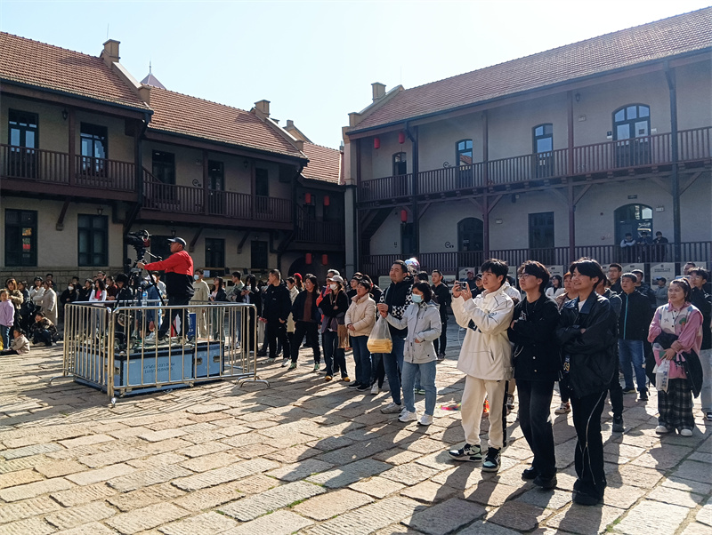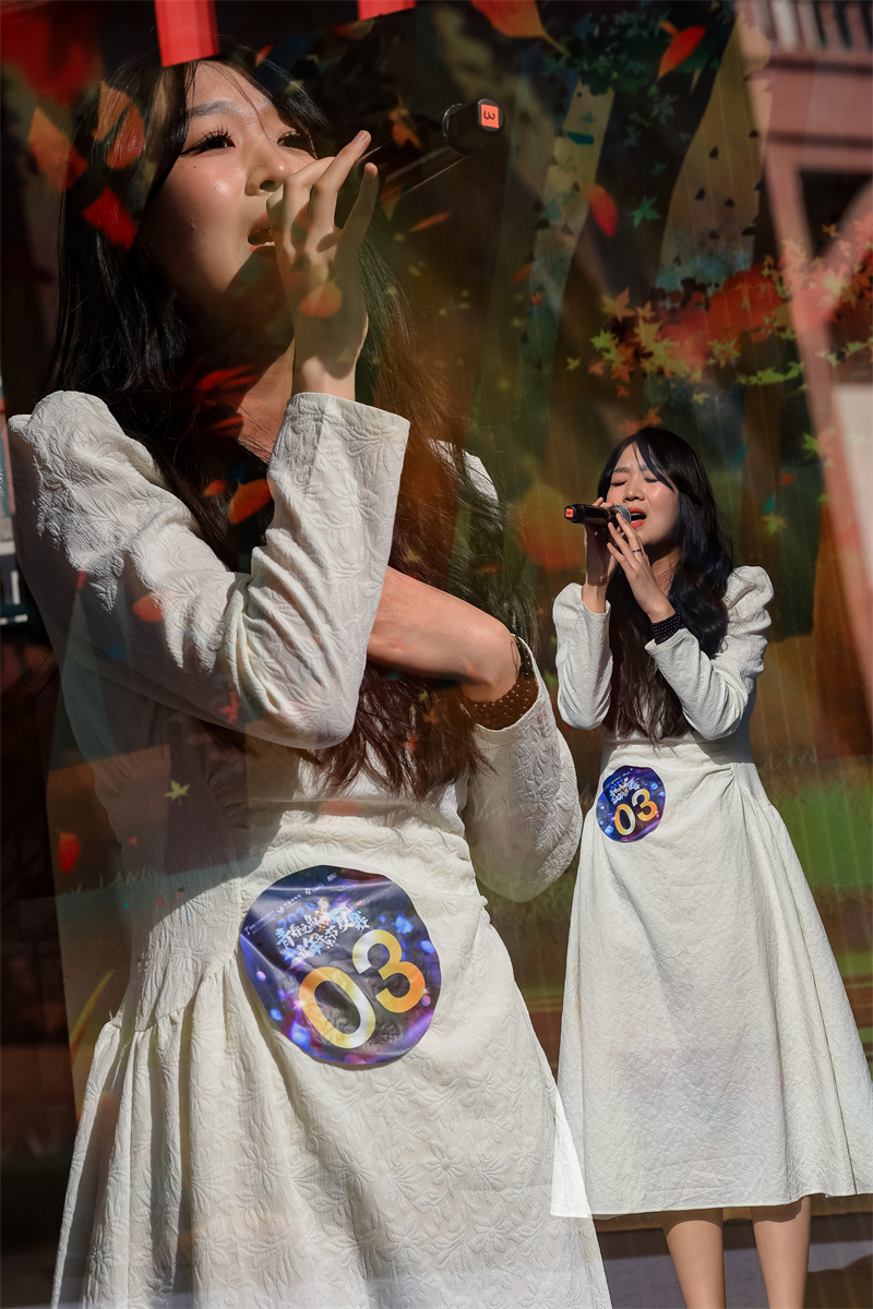 下午1時(shí)30分,音樂節(jié)復(fù)賽正式開啟。優(yōu)美的旋律,嘹亮的歌聲,活動(dòng)一開始就吸引大批在廣興里游玩的市民旅客駐足觀看。駐青高校的學(xué)子們唱著《如愿》《倔強(qiáng)》《飄向遠(yuǎn)方》等一首首耳熟能詳?shù)母枨钡秩诵牡男珊涂鞓纷杂傻姆諊鷶?shù)次引起了現(xiàn)場觀眾歡呼鼓掌。在現(xiàn)場觀眾中,有各高校選手們自帶的后援加油團(tuán),有跟著大人前來湊熱鬧的小朋友,還有很多聞聲而來的年輕人。來往的觀眾時(shí)而揮動(dòng)雙臂,跟著音樂的節(jié)奏輕輕搖擺;時(shí)而舉起手機(jī)來回拍攝,記錄下參賽選手們的精彩瞬間。