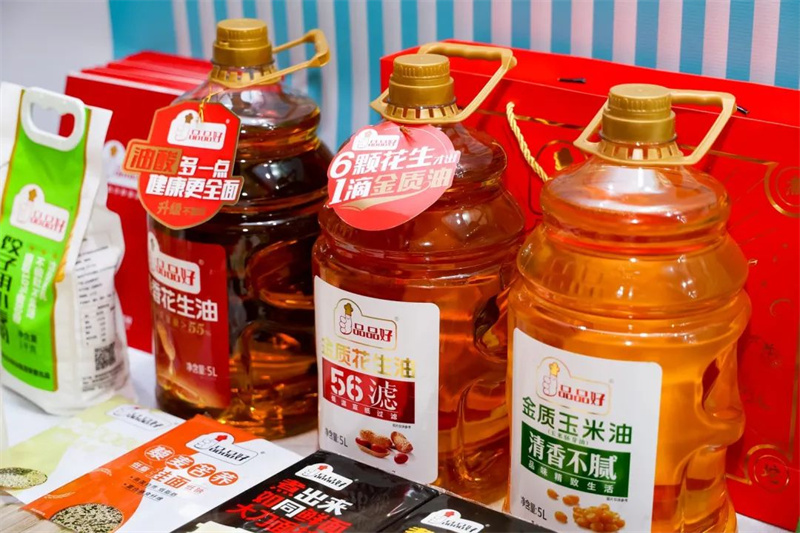 展廳內(nèi)品品好攜金質(zhì)花生油、如同鮮面掛面、高端小麥粉等明星產(chǎn)品亮相活動(dòng)現(xiàn)場(chǎng),“金質(zhì)花生油”,精選當(dāng)季膠東上等紅衣大花生為原料,物理壓榨,6顆花生才出一滴金質(zhì)油,56層宣紙低溫過(guò)濾,晶瑩剔透、色澤如金,油香醇厚;“如同鮮面”系列掛面原料純凈、品控嚴(yán)格,口感勁道爽滑,低脂低鈉,久煮不坨,久放不坨,更有蕎麥面、全麥面等面適合不同年齡段,可滿(mǎn)足不同顧客需求。這些產(chǎn)品一經(jīng)亮相,吸引了不少與會(huì)者咨詢(xún)了解,無(wú)論從產(chǎn)品外觀(guān)、包裝、原料、工藝、品質(zhì)及背后蘊(yùn)藏的研發(fā)理念,都得到了大家的關(guān)注與認(rèn)可。