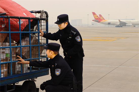 除了國內(nèi)貨運(yùn),國際客貨運(yùn)定期航班已覆蓋日韓、歐美、上合,通過全貨機(jī)、客機(jī)腹艙等運(yùn)輸形式,實(shí)現(xiàn)與全球主要經(jīng)濟(jì)體重點(diǎn)口岸互聯(lián)互通。場區(qū)派出所同各家物流企業(yè)建立常態(tài)化聯(lián)系,加強(qiáng)日常貨物安全監(jiān)管,組織企業(yè)對申報(bào)出口的管制器具提前報(bào)備,民警提前到場核驗(yàn),檢查備案登記、實(shí)名收寄、收寄驗(yàn)視、過機(jī)安檢等情況,為物流運(yùn)輸加購“安全餐”。