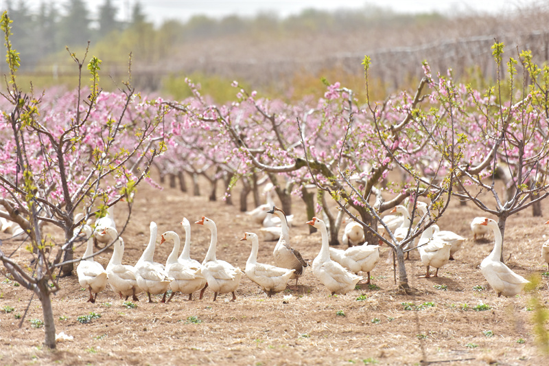 在農(nóng)場里,一頭頭黑豬悠然踱步于果林間,而它們的排泄物則通過發(fā)酵處理,轉(zhuǎn)化為滋養(yǎng)千畝農(nóng)田的有機(jī)肥料。"莊稼一枝花,全靠肥當(dāng)家。"韓女士指著長勢喜人的玉米田介紹,農(nóng)場構(gòu)建起"豬-肥-糧-禽"閉環(huán)生態(tài)鏈:黑豬糞肥種植飼草,飼草喂養(yǎng)雞鴨鵝,禽蛋產(chǎn)品再反哺市場,形成年產(chǎn)值超800萬元的立體農(nóng)業(yè)體系。這種"零污染、零排放"模式不僅獲評青島市生態(tài)循環(huán)農(nóng)業(yè)示范基地,更吸引周邊30余戶農(nóng)民加入合作社,帶動年增收2萬余元。