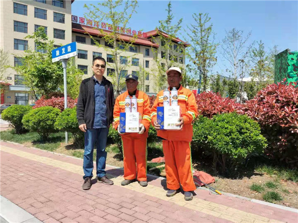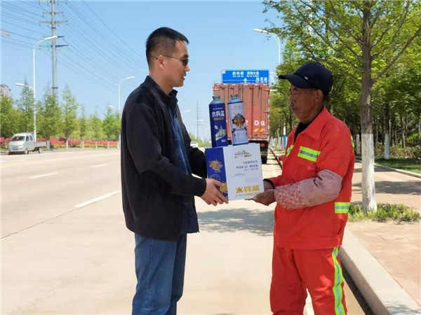 中國(guó)民生新聞網(wǎng)訊 (記者 素素)今天上午,在青島西海岸新區(qū)軍民融合區(qū)附近的道路上,一群辛勤打掃馬路的清潔工人收到了一份特殊的“禮物”,青島“水兵藍(lán)”啤酒公司向他們贈(zèng)送了“五一”節(jié)的禮品。品嘗著沁人心脾的啤酒,他們禁不住豎起了大拇指。