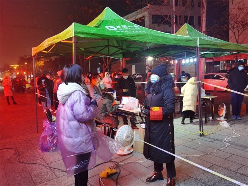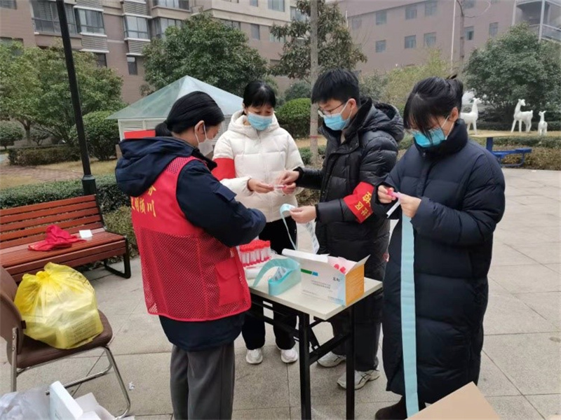 “人人爭當(dāng)志愿者,人人參與疫情防控。雖然我們不是醫(yī)生、護(hù)士,但我們應(yīng)該盡自己的綿薄之力,和大家一起打贏這場防控戰(zhàn)疫!”志愿者們身穿紅色馬甲,在檢測現(xiàn)場協(xié)助醫(yī)護(hù)人員登記信息、維持秩序,宣傳檢測知識,為不會使用手機(jī)微信小程序掃碼登記的居民提供指導(dǎo)幫助,為老人兒童開辟綠色檢測通道。