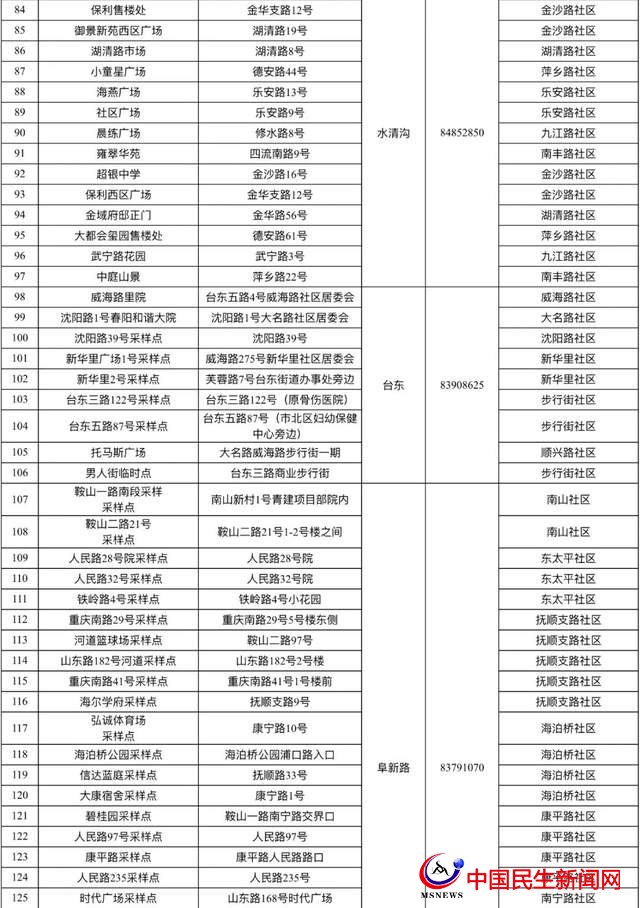 市北區(qū)核酸檢測采樣點(diǎn)一覽表