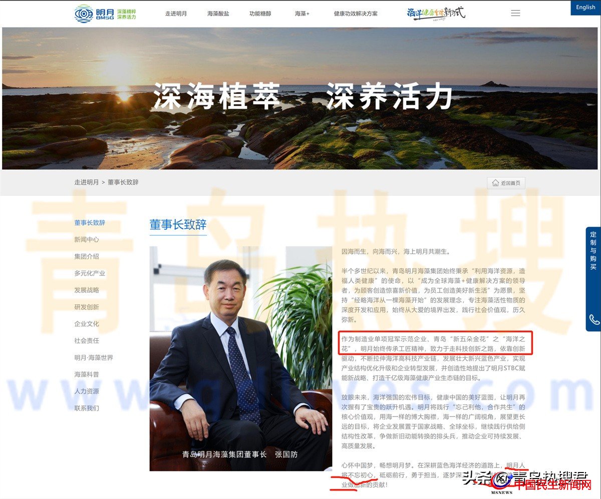 熱搜君通過企查查查詢發(fā)現(xiàn),青島明月海洋生活家酒店有限公司位于明月海藻世界景區(qū)內(nèi),經(jīng)股權(quán)穿透,其控股公司正是青島明月海藻集團有限公司,實控人為張國防。在明月海藻的官方網(wǎng)站的醒目位置刊載著董事長張國防的致辭——“明月人將不忘初心,砥礪前行,勇于擔(dān)當(dāng),逐夢深藍,為人類的大健康事業(yè)做出新的貢獻!”熱搜君覺得,明月海藻在實現(xiàn)人類大健康的宏偉藍圖前,先落實自家酒店的食品安全管理,恐怕是更加緊急且重要的事情。