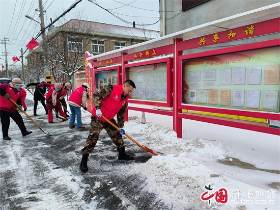氣溫驟降、突發(fā)降雪,居民出行的安全和暢通牽動(dòng)著小澗東社區(qū)黨總支的心。以黨建為引領(lǐng),充分發(fā)揮先鋒模范作用,社區(qū)黨總支書記帶頭示范,帶領(lǐng)社區(qū)全體“兩委”班子成員、工作人員組成“尚德銀行”紅色先鋒隊(duì),第一時(shí)間投身鏟雪除冰最前線。他們?cè)谳爡^(qū)范圍內(nèi)分段包干、分工協(xié)作,手持雪鏟、掃帚、鐵鍬等工具,在凜冽的寒風(fēng)中浴“雪”奮戰(zhàn),雙手雖被凍得通紅,但熱情絲毫不減,忙碌的身影成為路面上一道靚麗風(fēng)景線。他們不僅化身除冰清雪的“排頭兵”,更是文明出行的“先行者”,主動(dòng)作為,安排人員勸導(dǎo)交通,及時(shí)提醒過往車輛謹(jǐn)慎駕駛、保持車距、減速慢行,確保道路行車安全。