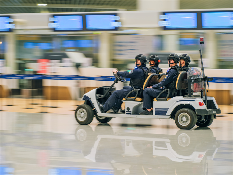 春運(yùn)期間,人流量顯著增加,青島機(jī)場預(yù)計航班達(dá)2.19萬架次、旅客量達(dá)296萬人次。面對出行人流高峰,機(jī)場公安提前謀劃,按照“航班不停、警力不撤”要求,在保持固定崗位執(zhí)勤基礎(chǔ)上,科學(xué)調(diào)配警力、動態(tài)布警,采取步巡與車巡相結(jié)合方式,分區(qū)域、分時段加強(qiáng)巡邏,重點(diǎn)在航站樓出發(fā)到達(dá)廳、綜合換乘中心等人員密集區(qū)域,以及值機(jī)、安檢、登機(jī)等部位開展24小時不間斷巡防,提高見警率和管事率。