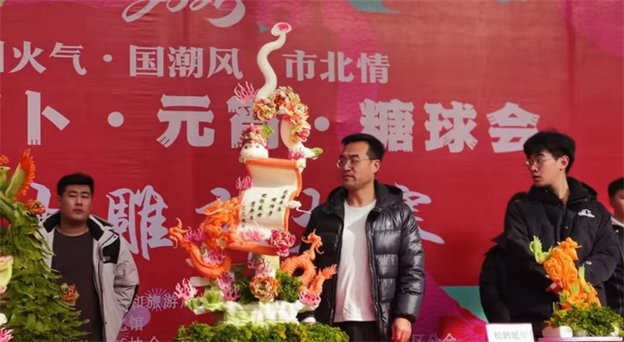 傳統(tǒng)活動賽事蘿卜雕刻大賽也于2月6日下午在廣興里如期舉行,20余位知名的雕刻大師現(xiàn)場展示精湛的技藝,用刻刀“刻畫”出一個個精美的蘿卜雕刻作品,活動現(xiàn)場將評選出本屆“蘿卜雕刻大賽”獲獎作品,進(jìn)行集中展示。中國北方素有正月初九“咬春”的習(xí)俗,“咬春”即吃蘿卜,栩栩如生的雕刻作品讓現(xiàn)場的市民游客大飽眼福的同時,也收獲到“長長久久,平平安安”的美好祝愿。
