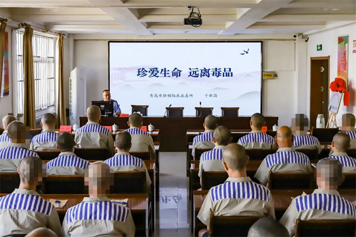 揭牌儀式結(jié)束后,青島市強(qiáng)制隔離戒毒所“和風(fēng)”禁毒戒毒法治宣傳隊(duì)警察以“珍愛生命 遠(yuǎn)離毒品”為主題,對(duì)50余名新入監(jiān)服刑人員開展了禁吸戒毒法治宣傳教育。(通訊員 陳曉邦)