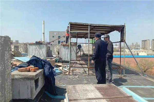 接到居民投訴后,開(kāi)平路街道街道綜合行政執(zhí)法中隊(duì)曾多次到現(xiàn)場(chǎng)調(diào)查、數(shù)次聯(lián)系當(dāng)事人,然而當(dāng)事人卻一直以各種理由推脫,避而不見(jiàn)。為了打破僵局、盡快解決問(wèn)題,街道綜合行政執(zhí)法中隊(duì)專(zhuān)程到房產(chǎn)交易中心調(diào)取當(dāng)事人房產(chǎn)資料,同時(shí)致函聯(lián)系市信鴿協(xié)會(huì)予以協(xié)助。今年春節(jié)假期期間,街道執(zhí)法中隊(duì)工作人員也多次登門(mén)做工作。經(jīng)多方努力,當(dāng)事人分三個(gè)月分批將飼養(yǎng)參賽信鴿全部遷移。信鴿遷移后,執(zhí)法中隊(duì)帶領(lǐng)施工隊(duì)連續(xù)施工兩天,將樓頂違建鴿籠全部予以拆除。
