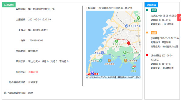 路燈不亮的問(wèn)題并非小事。“這個(gè)院子只有這一處照明設(shè)施,有時(shí)候下班晚歸非常擔(dān)心夜間行路安全。”周邊居民表示。了解到該處路燈屬于市路燈管理處的管轄范圍,社區(qū)工作人員立刻聯(lián)系對(duì)接,路燈管理處很快派專(zhuān)業(yè)人員對(duì)該處路燈進(jìn)行維修。依托“黨群 e家”平臺(tái),鎮(zhèn)江路街道網(wǎng)格居民可以快速發(fā)布問(wèn)題,并且可以讓問(wèn)題及時(shí)快速得到解決,切實(shí)提升了居民群眾的獲得感、幸福感和安全感。