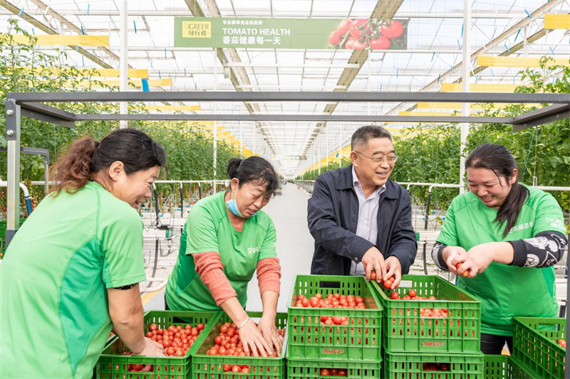 在萊西七星河新村智慧農(nóng)業(yè)小鎮(zhèn)的智能溫室大棚中,伴隨著悠揚(yáng)的音樂,一株株大小一致紅色番茄在恒溫、恒濕的環(huán)境中將枝干伸向荷蘭紋絡(luò)式玻璃幕墻。據(jù)七星河新村第一書記張建東介紹,僅一個(gè)14000平方米智能溫室大棚便可解決就業(yè)200余人,有效拉動(dòng)了當(dāng)?shù)剞r(nóng)民就業(yè)。“數(shù)據(jù)已經(jīng)成為農(nóng)業(yè)生產(chǎn)中重要的生產(chǎn)要素,我們將視野投向數(shù)字農(nóng)業(yè),二期的智能溫室大棚投產(chǎn)在即,加上與之配套的中性硼硅藥用玻璃和碲化鎘薄膜太陽(yáng)能電池項(xiàng)目,可安排勞動(dòng)力2000人,實(shí)現(xiàn)年產(chǎn)值35億元、稅收3.7億元。”張建東說。
