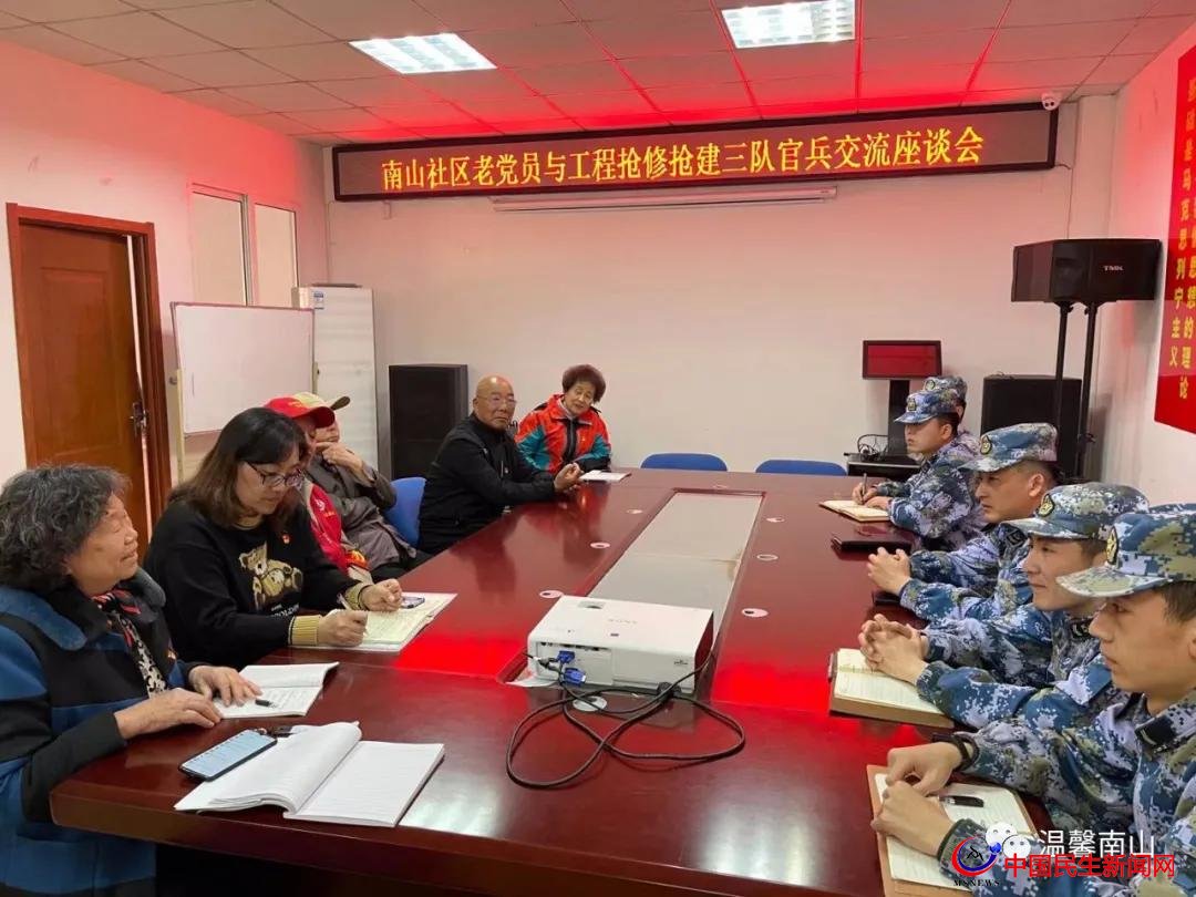 工程搶修搶建三隊的官兵也與現(xiàn)場的老黨員分享了他們承接和參與的一些重點工程和任務(wù),哪里有危險,哪里就有軍人在沖鋒;哪里有需要,哪里就有軍旗在飄揚。老黨員們紛紛為新時代的軍人點贊。