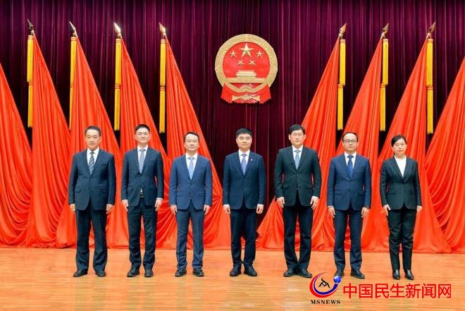 新當(dāng)選的區(qū)人大常委會主任、副主任,區(qū)人民政府區(qū)長、副區(qū)長,區(qū)監(jiān)察委員會主任,區(qū)人民法院院長與代表見面并向憲法宣誓。