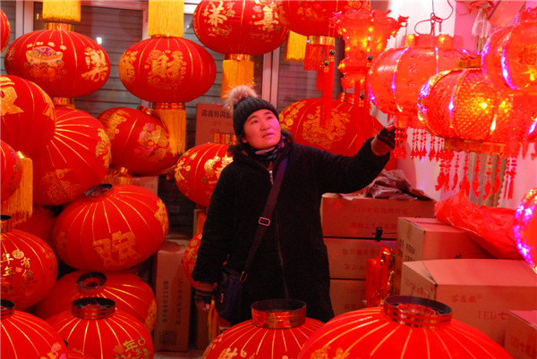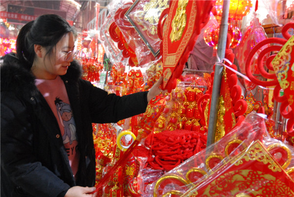 1月15日,顧客在山東青島市即墨區(qū)小商品城選購(gòu)新年飾品。 隨著新春佳節(jié)的臨近,山東青島市即墨區(qū)小商品城的年貨市場(chǎng)日漸紅火,攤位上喜氣洋洋,店鋪擺滿(mǎn)了燈籠、福字、金牛等新年飾品,紅燈籠、中國(guó)結(jié)、電子鞭炮、對(duì)聯(lián)、掛件等新年飾品和琳瑯滿(mǎn)目的商品吸引著眾多的顧客。即墨區(qū)小商品城迎來(lái)喜慶用品節(jié)前銷(xiāo)售旺季。
