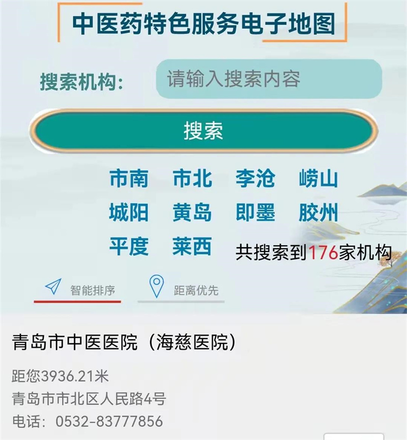在全省率先推出“中醫(yī)藥特色服務(wù)電子地圖”,匯聚全市中醫(yī)藥特色突出的176家醫(yī)療機(jī)構(gòu),包括47家醫(yī)院、39家社區(qū)衛(wèi)生服務(wù)機(jī)構(gòu)、85家鎮(zhèn)街衛(wèi)生院、5家門診部(診所)等其他醫(yī)療衛(wèi)生機(jī)構(gòu),市民通過青島市衛(wèi)生健康委員會官網(wǎng)首頁底部掃描二維碼,或關(guān)注“青島衛(wèi)生健康”“健康青島科普資源庫”微信公眾號,點(diǎn)擊鏈接入口登陸電子地圖,就能輕松享受到包括機(jī)構(gòu)查找、科室查詢、特色診療和實(shí)時導(dǎo)航等在內(nèi)的“一站式”中醫(yī)診療便民服務(wù),目前已有2萬余人次受益。青島市中醫(yī)醫(yī)院(市海慈醫(yī)院)推出二十四節(jié)氣養(yǎng)生藥膳,首批精選48個藥膳食療養(yǎng)生方,詳解方劑組成原料、用法及其功效應(yīng)用,幫助市民養(yǎng)成“適時而食”的養(yǎng)生習(xí)慣,利用天時規(guī)律使養(yǎng)生事半功倍;醫(yī)院各科門診均能提供二十四節(jié)氣養(yǎng)生藥膳服務(wù),專家可根據(jù)個人體質(zhì)開具專屬養(yǎng)生藥膳,幫助市民增強(qiáng)身體素質(zhì)與自身免疫力,不斷提高市民健康水平。