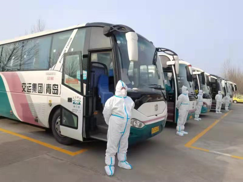 據(jù)了解, 21日萊西市共計派出53輛大巴車,分別赴膠州、即墨、城陽等集中隔離點迎接1100余名解除隔離人員回家,其中交運萊西事業(yè)部30部。