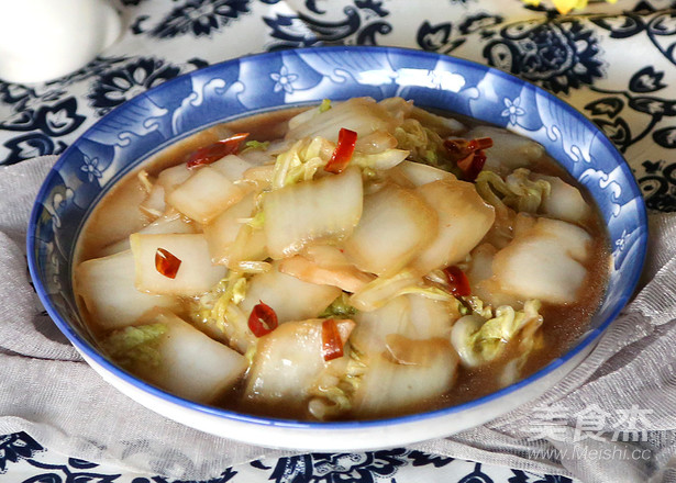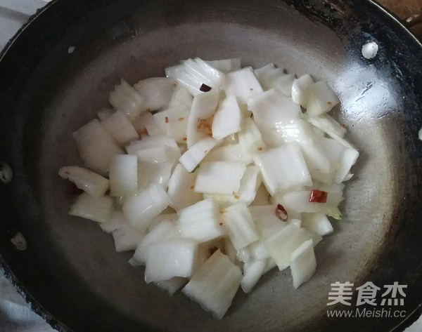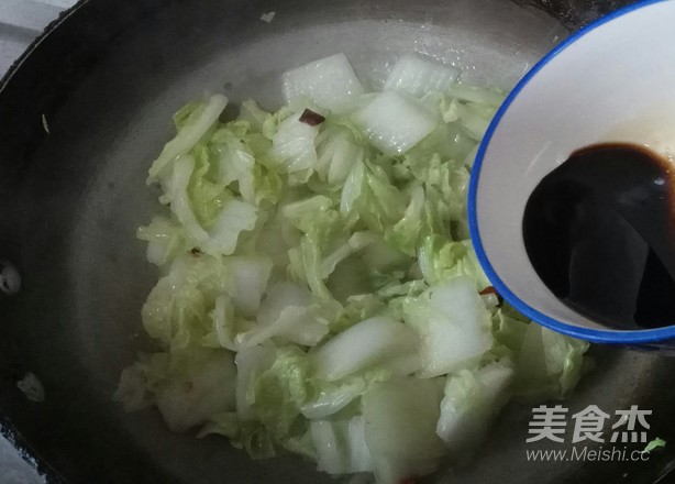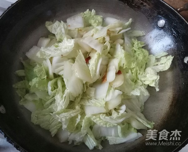 5.加入白菜幫翻炒。