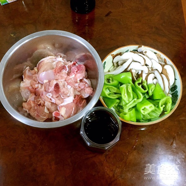 4.雞腿斬塊,青椒切塊,香菇切片