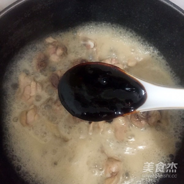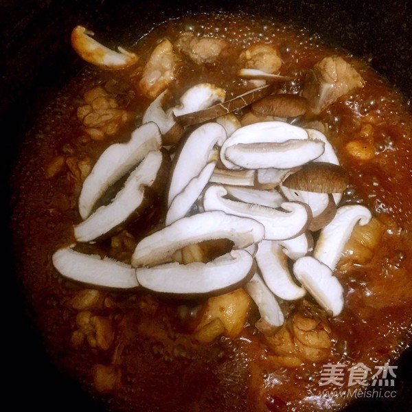 8.加入熱水,加香菇,煮沸。轉(zhuǎn)砂鍋燉