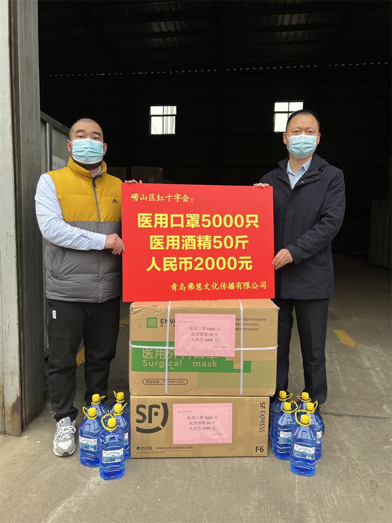 青島佛慧文化傳播有限公司向嶗山區(qū)紅十字會捐贈防疫物資