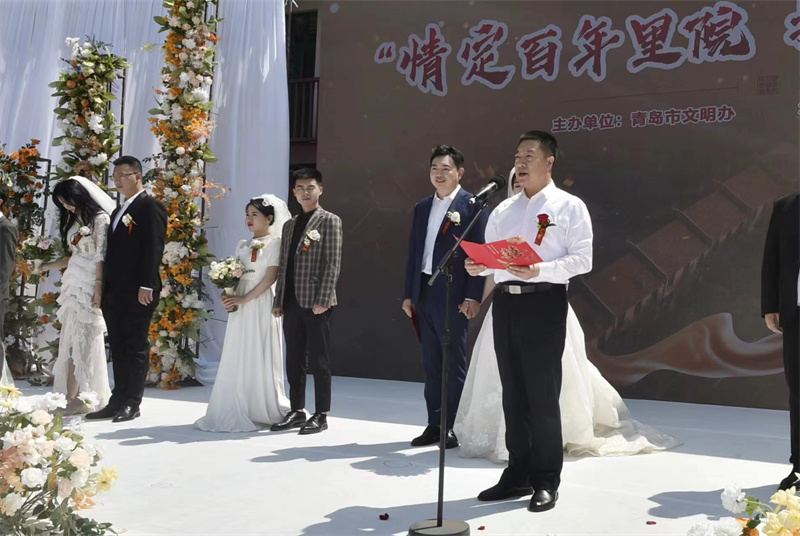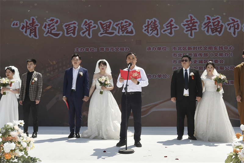 中國民生新聞網(wǎng)訊 市北區(qū)自新時代結(jié)婚禮堂啟用和新時代文明實踐集體婚禮舉辦以來,越來越多的新人摒棄舊俗,啟用新的結(jié)婚方式,更加文明,更加節(jié)儉,更有新時代青島范兒。5月22日,在青島最大的百年里院廣興里舉行了一場別開生面的集體婚禮,集體婚禮以“情定百年里院 攜手幸福市北”為主題,由青島市文明辦主辦,市北區(qū)新時代文明實踐中心、市北區(qū)委宣傳部(文明辦)、市北區(qū)歷史城區(qū)管委會、市北建設(shè)投資集團有限公司承辦,市北區(qū)民政局、青島薇薇新娘婚紗攝影有限公司協(xié)辦,8對新人齊聚一堂,在親人朋友、市民群眾的祝福和見證下,以溫馨浪漫而又簡約簡單的方式步入新時代文明實踐婚姻的殿堂。
