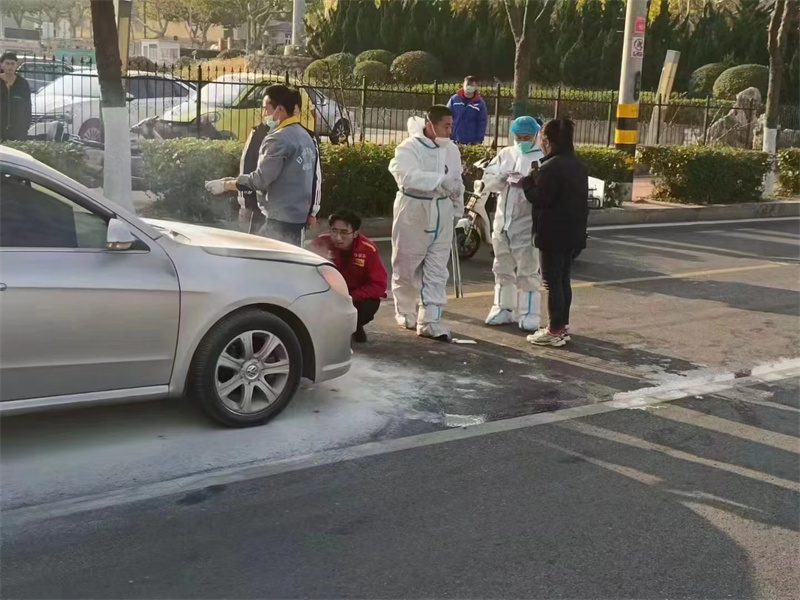 11月15日下午3點左右,李文清在青島支援疫情轉(zhuǎn)運過程中,路過青島市清江路紅綠燈路口,老遠看到有輛轎車冒著滾滾濃煙,等李文清駕車離近發(fā)現(xiàn)是私家轎車發(fā)動機著火了,車主正站在旁邊手足無措。