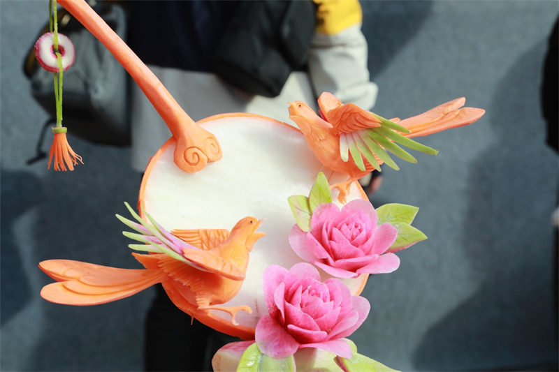 值得一提的是,本次蘿卜雕刻大賽恰逢農(nóng)歷正月初九,中國(guó)北方素有“咬春”的習(xí)俗,即在這一天吃蘿卜,寓意“長(zhǎng)長(zhǎng)久久,平平安安”?;顒?dòng)現(xiàn)場(chǎng),栩栩如生的蘿卜雕刻作品不僅讓市民游客大飽眼福,更讓大家感受到了濃濃的年味和美好的祝福。