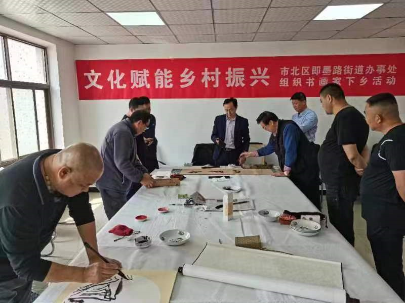 青島快訊 近日,由青島市文化和旅游局指導(dǎo)、青島市文化館主辦、青島市市北區(qū)即墨路街道辦事處承辦的“文化賦能鄉(xiāng)村振興”書畫家下鄉(xiāng)活動舉辦。