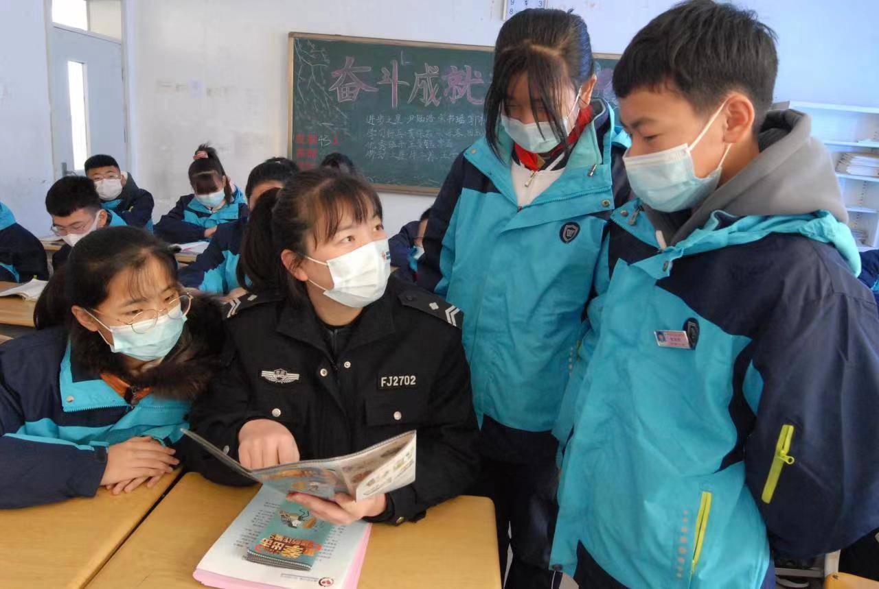 12月1日,山東省青島市公安局即墨分局藍村派出所民警在青島市即墨區(qū)藍村中學為學生講解交通安全知識。