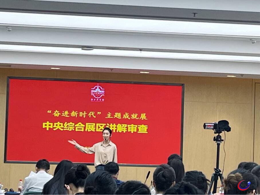 “喜迎二十大‘奮進(jìn)新時(shí)代’主題成就展”分中央展區(qū)和地方展區(qū)兩大部分。集訓(xùn)期間,張曉悅以優(yōu)異的現(xiàn)場講解演練及臨場應(yīng)變表現(xiàn),順利通過了中宣部多次考核與選拔,入選中央綜合展區(qū)講解員,負(fù)責(zé)中央展區(qū)第五、第六單元,講解內(nèi)容為文化建設(shè)和社會(huì)建設(shè)。