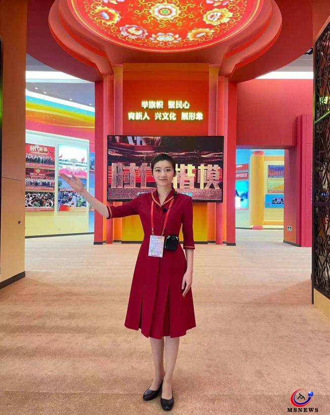 為準(zhǔn)備此次重大展覽任務(wù),張曉悅自7月中旬,參加了為期兩個(gè)月的封閉培訓(xùn),除文化課程、形體訓(xùn)練、講解技巧等專業(yè)知識(shí)培訓(xùn)外,還全面了解和掌握了黨的十八大以來,黨和國家事業(yè)取得的歷史性成就,發(fā)生的歷史性變革,以及重大活動(dòng)、重要事件,重點(diǎn)主題宣傳報(bào)道等。培訓(xùn)期間,幾十版講解詞隨時(shí)更新替換。面對(duì)一次又一次的挑戰(zhàn),她始終積極應(yīng)對(duì)、加倍付出、努力成長。記不得有多少次,在仍是施工狀態(tài)的展廳內(nèi),迎著清晨第一縷曙光,伴著夜晚最后一盞燈光,不停歇地練習(xí)著、練習(xí)著......身體雖已極度疲勞,精神卻依舊保持著最佳狀態(tài)。