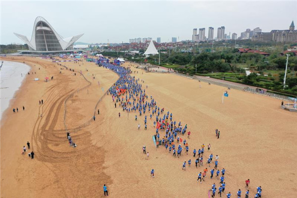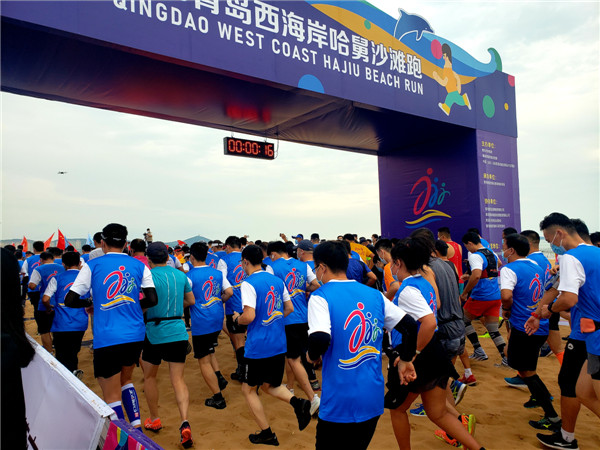青島西海岸新區(qū)哈舅沙灘跑鳴槍開跑2800余名跑友集結西海岸