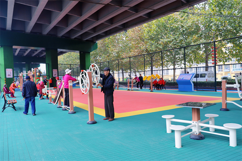 “以前,彩虹橋底下亂糟糟的,好多居民把私家車隨意停在橋底下,橋柱子上都是各種各樣的小廣告,還有過來擺攤的,撤攤過后扔下一地的垃圾,給環(huán)衛(wèi)工人增加了很多的工作量,這塊區(qū)域一直是我們城市管理工作中的頑疾”。 談起橋底近來的前后變化,城陽街道黨工委委員、辦事處副主任徐永橋深有感觸。“為了徹底改變周邊居民生活環(huán)境,我們從2021年9月28日開工建設(shè)運動公園,前后只用了一個月,過去居民詬病的臟亂差,如今搖身一變成為老少同歡的運動場。”
